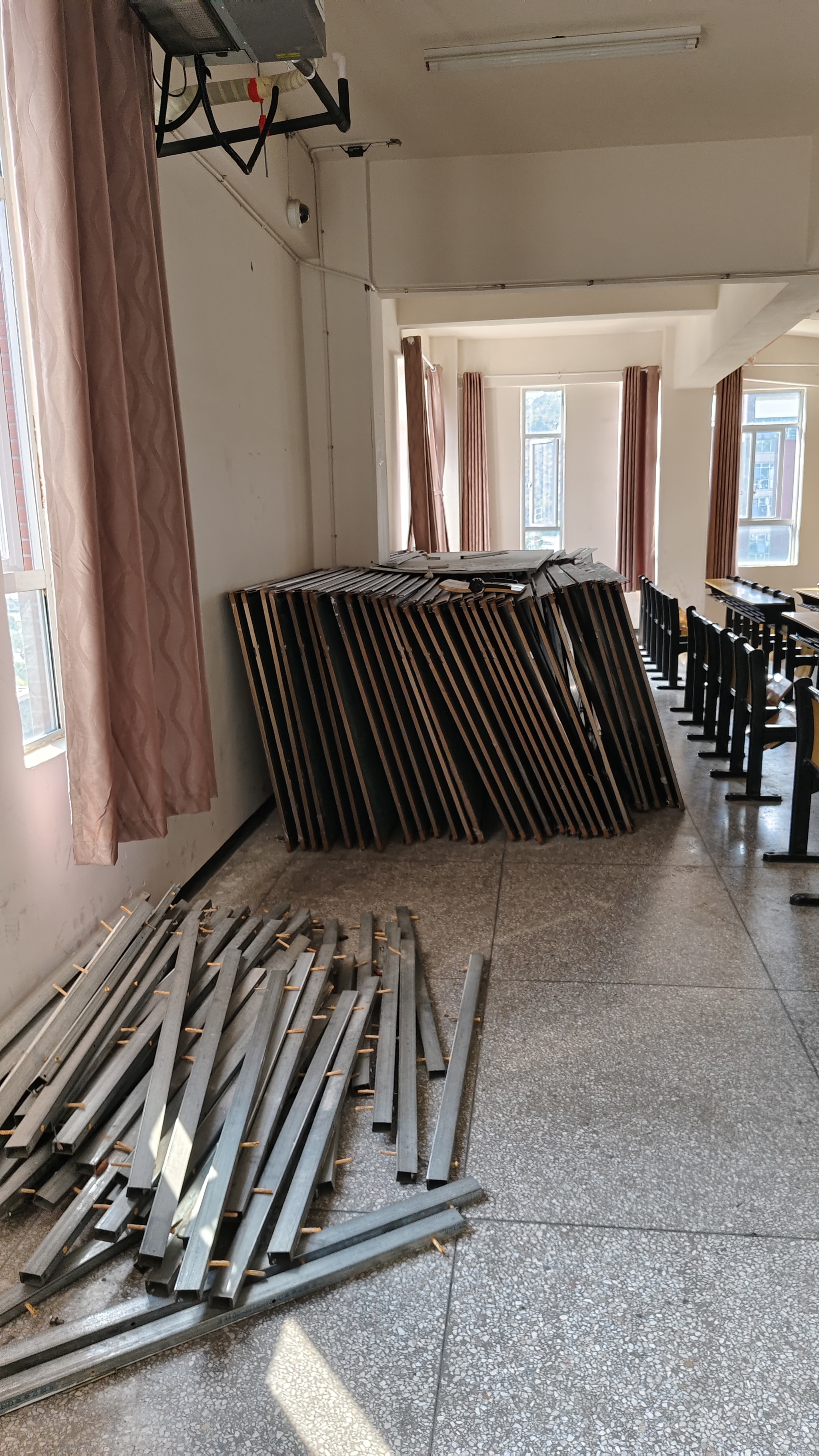 张家界航空工业职业技术学院课桌椅 奈雪影视在线. 平行推拉黑板处置回收服务商选择.