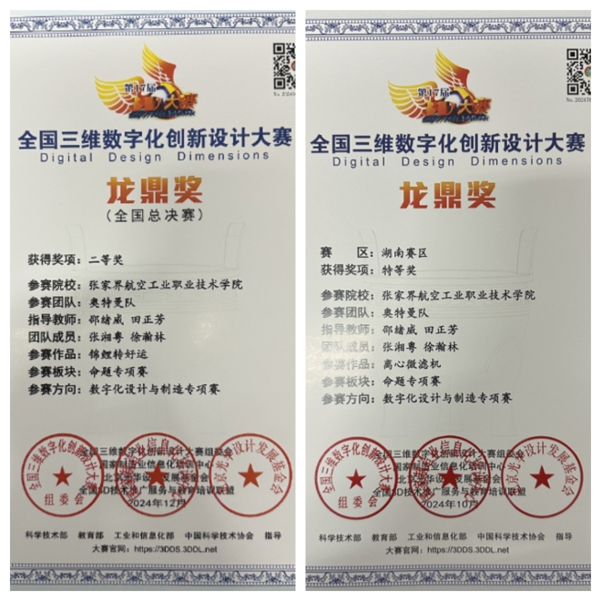 11月29日至12月1日,第17届全国三维数字化创新设计大赛年度总决赛在广东工商职业技术大学举行,来自全国29个赛区的近160支参赛队伍入围全国总决赛,我校师生组合张湘粤,徐瀚林以湖南省赛区特等奖的身份代湘出征,在邵绪威 奈雪影视,田正芳老师的指导下,其作品“锦鲤转好运”在数字化设计与制造专项赛中脱颖而出,荣获全国总决赛二等奖。