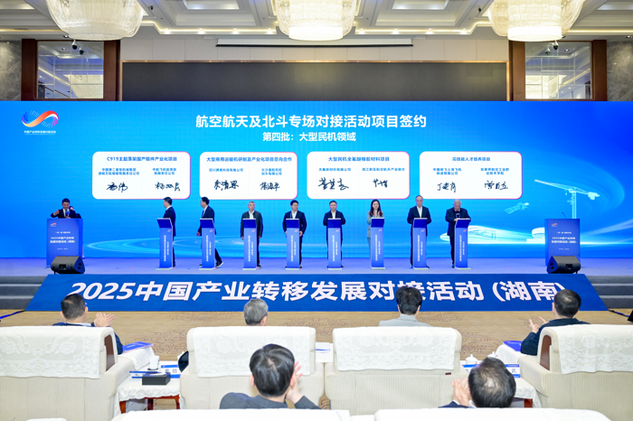 3月29日,由湖南省工业和信息化厅承办的“2025中国产业转移发展对接活动(湖南)——航空航天及北斗专场对接活动”在湖南宾馆举行,湖南省委常委,副省长张迎春致欢迎辞,国家航天局,工业和信息化部领导,中国商飞,中航工业,中国航发,中国航天科技集团,中国航天科工集团和相关院校代表,院士专家,省直机关,航空航天及北斗产业链专班成员单位 奈雪影视,金融机构,行业管理部门有关负责人以及14 个省级以上高技术转化应用产业示范基地,108 家省内外航空产业企事业单位代表参加,活动由湖南省人民政府副秘书长毛朝晖主持。