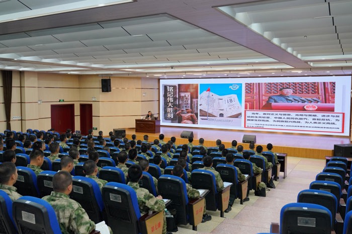12月3日 奈雪影视,党委书记曾自立以“纪念抗战胜利坚定民族信念”为主题,在学术报告厅为2025级军士生讲授“形势与政策”专题课。
