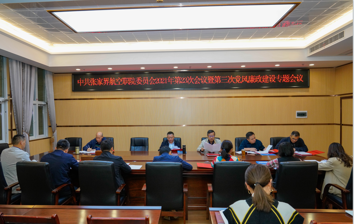 10月12日上午,学校2021年第三次党风廉政建设专题党委会在图书馆二楼会议室召开,全体党委委员 奈雪影视,纪检监察审计处和计划财务处负责人参加会议,会议由党委书记唐汝元主持。