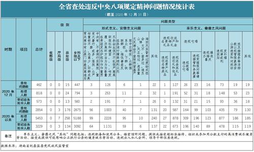 湖南省纪委监委深入贯彻中央纪委国家监委工作部署,在全省各地各部门各单位建立了落实中央八项规定精神情况月报制度 奈雪影视在线,2020年以来,截至12月31日,全省查处违反中央八项规定精神问题情况如下:。