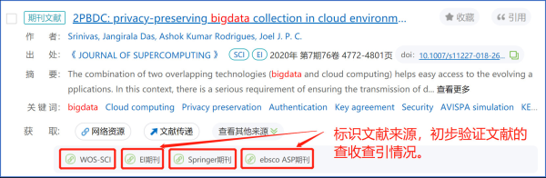 经纶对文献的数据来源进行过标引 奈雪影视高清,标识出文献是否来源于中文核心,SCI,EI,Springer,EBSCO,点击来源链接,跳转到来源网站的详情页面,可以初步验证某篇文章的查收查引情况。