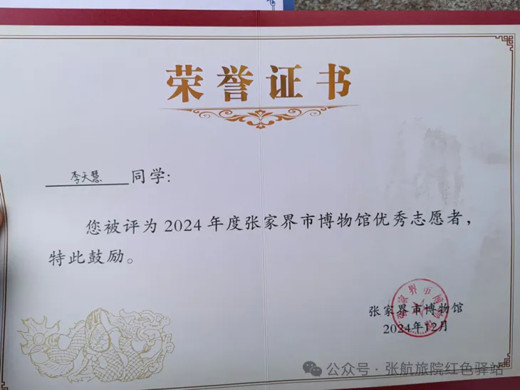 我在2024年12月份的志愿者表彰大会上,被评为张家界市博物馆优秀志愿者,在服务中让我感觉到了真诚的责任感和在服务时的快乐感,看着别人开心自己也很开心,阳光始终都是暖和照人,给我们无尽光明和希望作为一个大学生我也始终都特别重视把暖和传递给每一个人 奈雪影视高清,志愿服务让我在实践中不断成长,学会了如何解决问题和应对挑战,这份伟大的工作我会一直做下去的,加油.
